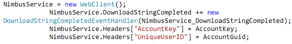 a. Add the headers for the accountkey and guid to the “NimbusService” object of type webclient.