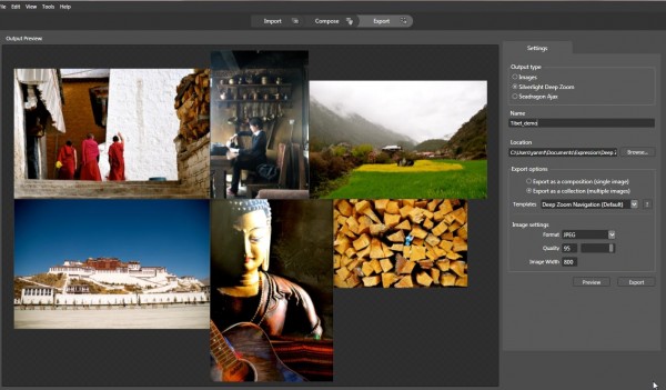 5. Now, click on Export Icon from the top navigation bar. Type in the name of your Deep Zoom application and choose location for your files as well. There are several templates you could choose from. And here, I will select Deep Zoom Navigation. And you could further customize your image settings. Click on Export.