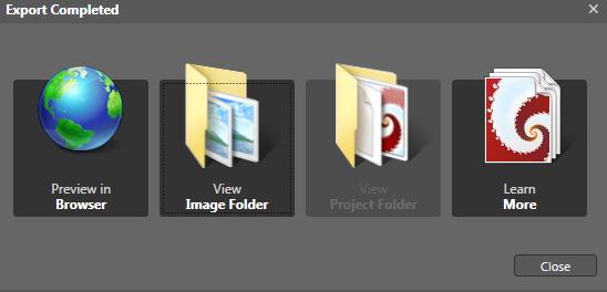 6. After exporting successfully, you will be able to either viewing your silverlight application in web browser or browse files in local folders.