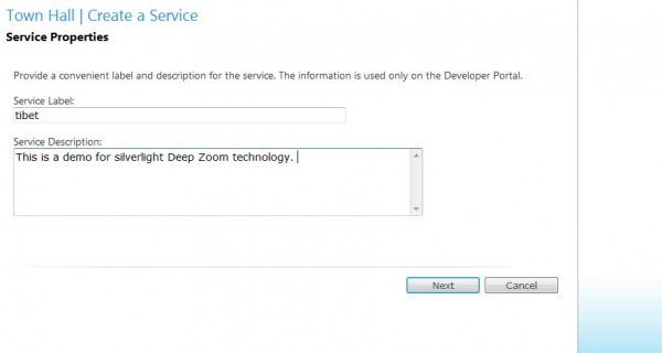 18. Type in a Service Label and Service Description showed as below to create a new service. Click on Next.