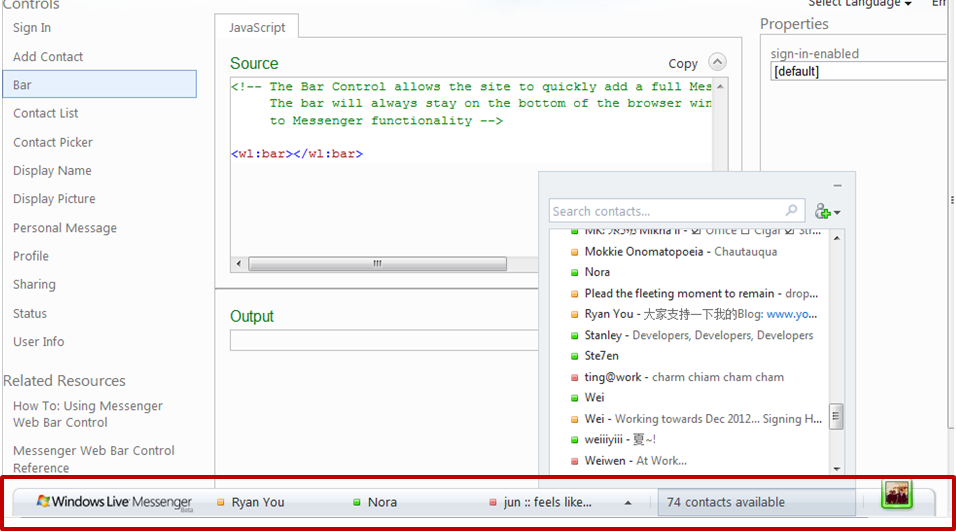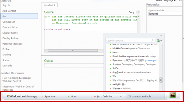 1. Display a Windows Live Messenger bar on the bottom of the web application