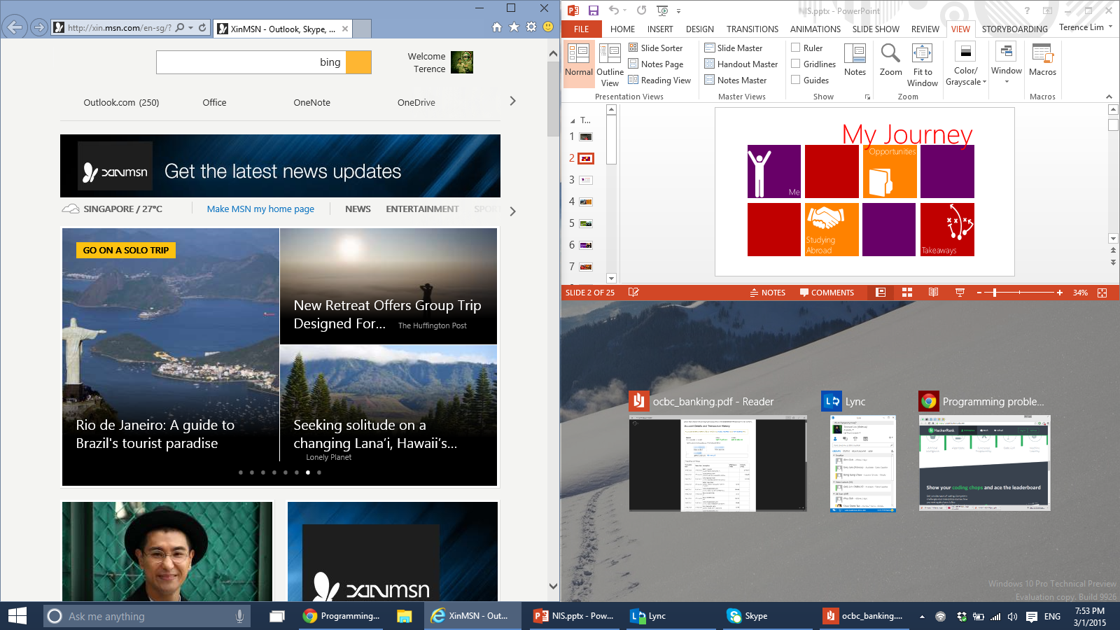 Another feature that I noticed was the improved Snap View feature which allows users to dock application windows simultaneously to the corners of the desktop. This allows users to juggle between many apps at once and hence improve efficiency. Upon docking, users are also presented with a set of the remaining open applications, which the user may quickly select to fill up the remaining space in a very convenient manner. Pressing the Windows + Tab key also brings up the improved task view, which shows up all the running applications at its current state. On top of that, users may create additional desktop views to toggle between different desktop states.